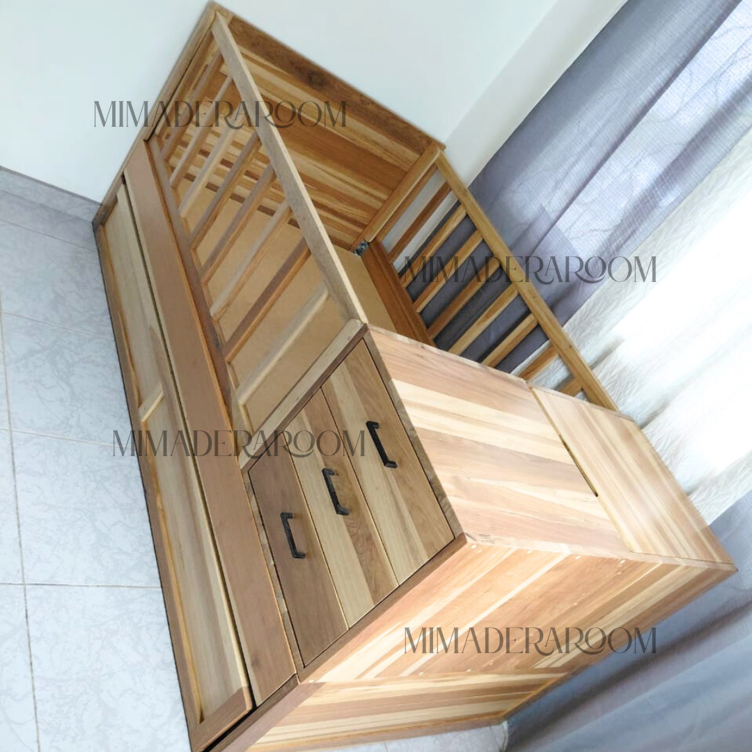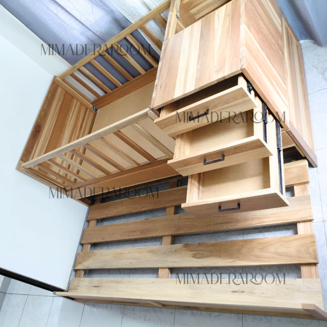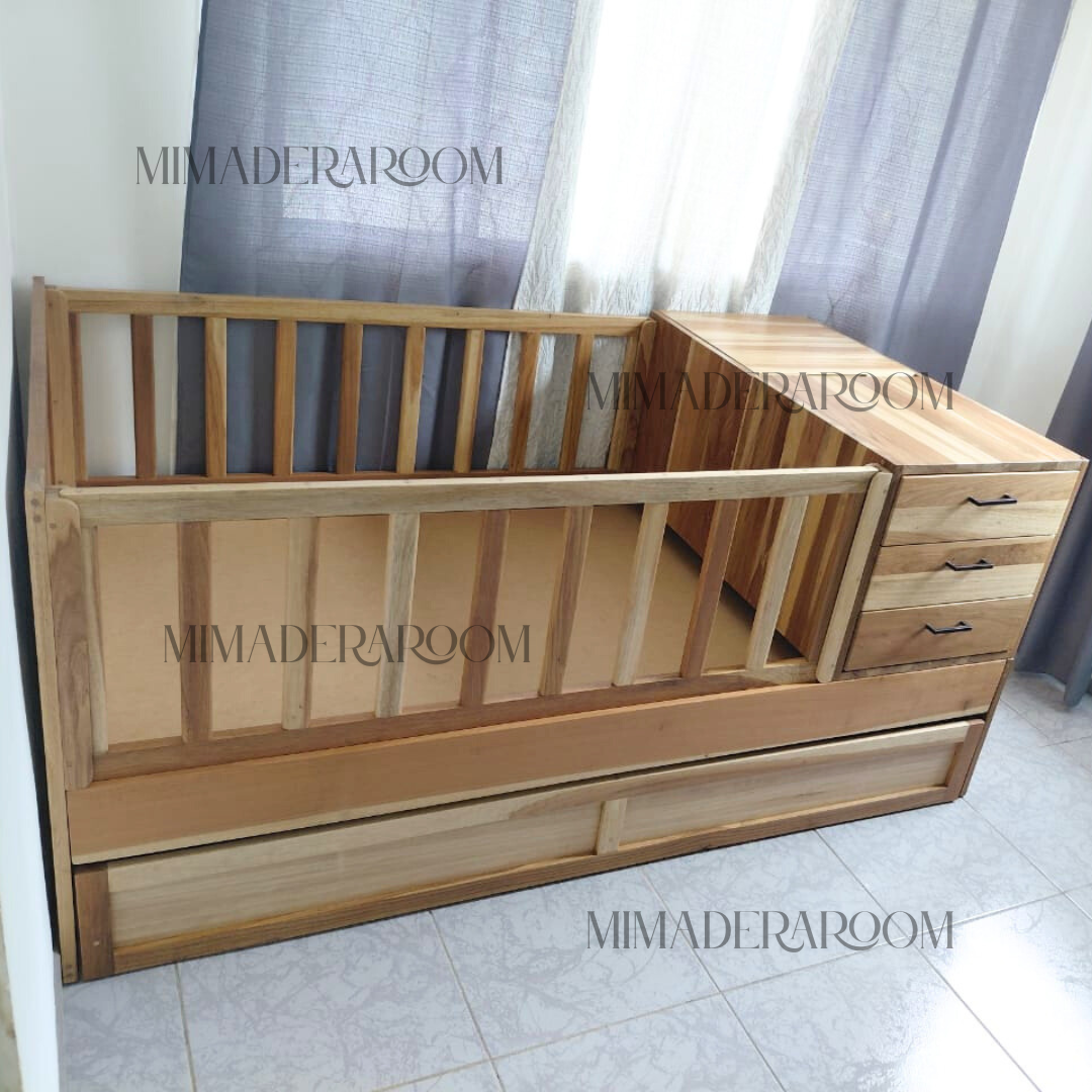 Pasa de cuna a una cama individual con nido que puedes escoger entre una cama accesoria o gavetas.