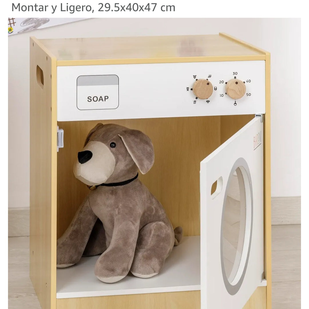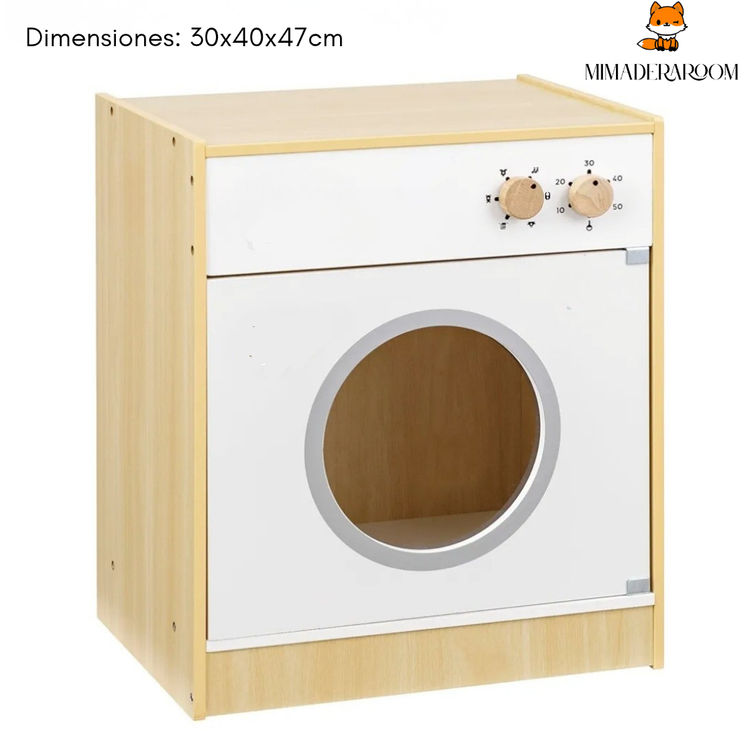 Hermosa lavadora se juguete, de madera de pino y MDF.